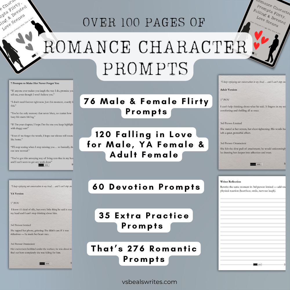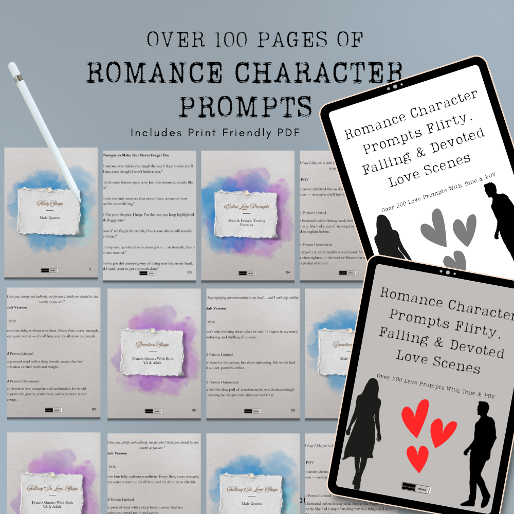 This 100+ page printable and digital workbook is designed for writers who crave depth, tone, and emotion in their romantic scenes—without getting stuck in writer’s block or cringing at cliché lines.